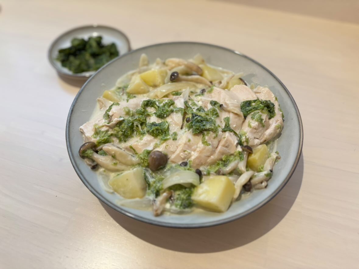 材料(2人分) 鶏むね肉1枚(250g)砂糖小さじ1しめじ1/2株玉ねぎ1/2個じゃがいも1個塩こしょう適量バター(無塩)大さじ1牛乳120g粉チーズ小さじ1鶏ガラスープの素小さじ1/2塩適量乾燥あおさ4g